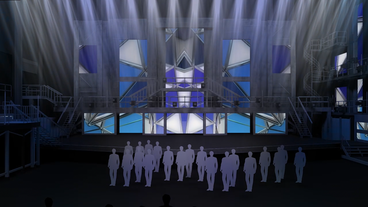 Turnaround time from brief to recording was one week, so collaboration across all departments from costumes to staging was vital. For each performance we created animated PreViz to enable the production team to visualise what the stage would look like. Onsite, we worked particularly closely with lighting director Gurdip Mahal to ensure that the graphics looked as good as they could be and accommodate any last minute requests for changes.